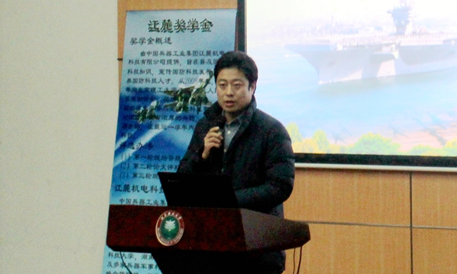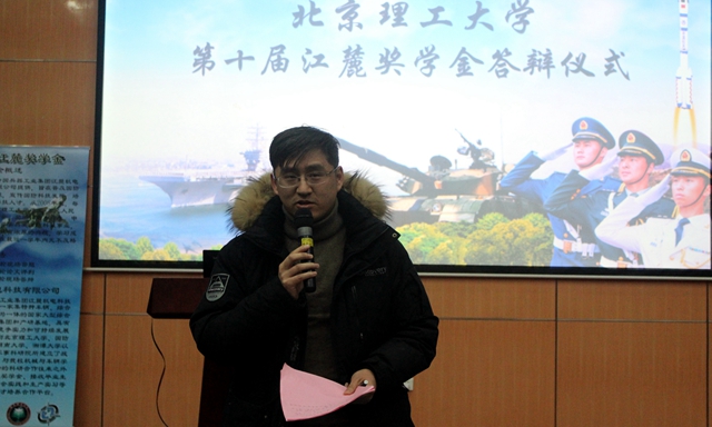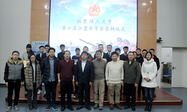 2017年12月28日,365bet线上开户第十届“江麓奖学金”答辩仪式在良乡校区综合教学楼报告厅隆重举行。“江麓奖学金”由江麓机电集团有限公司设立,旨在普及国防科技知识、宣传国防科技发展前沿技术、培养合格的国防科技人才,自2008年设立以来每年都吸引着大批对军事非常热爱的本科生参与评选,本届评出获奖学生15名,每人奖励6000元。