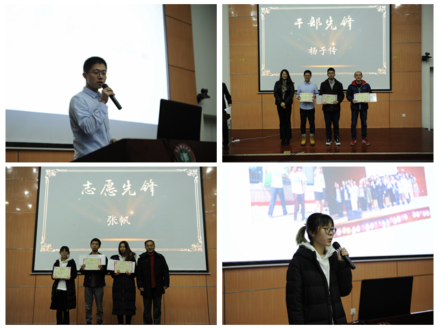 大会对在科技创新方面出色表现的先锋团队、社会实践工作杰出的团队进行了表彰,在辩论赛、时事论坛中表现出色的同学,荣获创新创业奖学金、机器人奖学金和江西国科奖学金的同学也上台接受表彰,在场的同学对他们取得的成绩给予热烈的掌声。