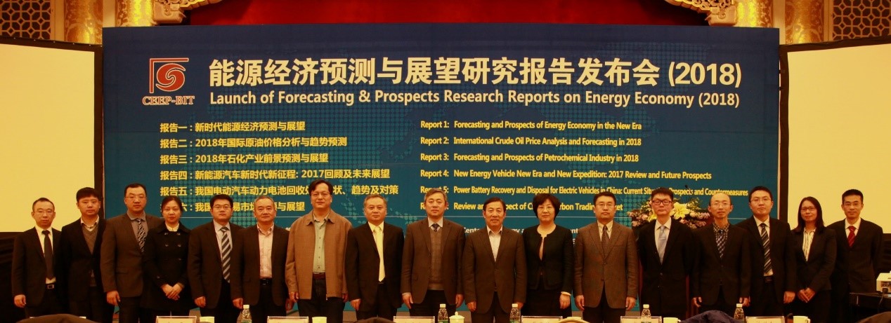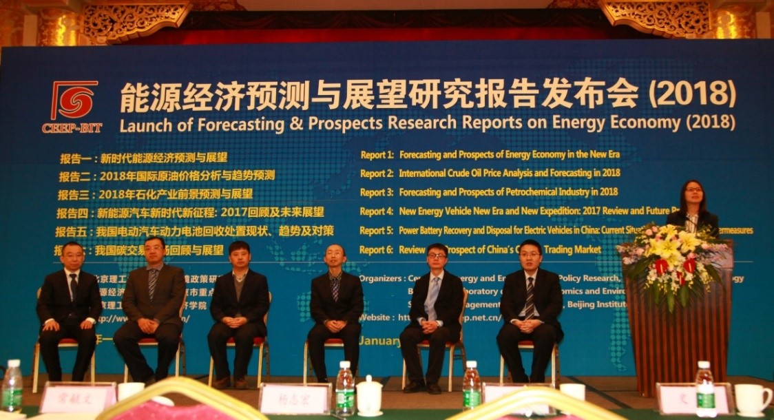 1月13日,365bet线上开户能源与环境政策研究中心在北京举行2018年度“能源经济预测与展望研究报告发布会”,对外发布《新时代能源经济预测与展望》《2018年国际原油价格分析与趋势预测》《2018年石化产业前景预测与展望》《新能源汽车新时代新征程: 2017回顾及未来展望》《我国电动汽车动力电池回收处置现状、趋势及对策》《我国碳交易市场回顾与展望》六份研究报告。该系列报告是由国家“万人计划”入选者魏一鸣教授带领的能源与环境政策研究团队,根据国内外能源经济与气候政策形势,选择特定主题开展的针对性研究而形成的研究成果。自2011年以来,该团队已经第8次发布年度能源经济预测与展望研究报告,引起了各界广泛关注和影响。