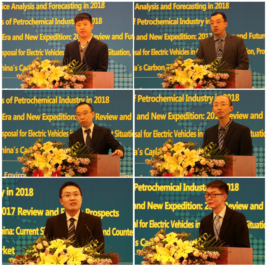《新时代能源经济预测与展望》报告主要执笔人郝宇副教授预测,2018-2022年间,能源消费总量将持续小幅增长,能源不平衡不充分的发展态势还会持续,清洁能源占比在未来五年会有明显增长。《2018年国际原油价格分析与趋势预测》报告执笔人赵鲁涛副教授指出,2018年国际原油价格保持逐步回升的状态,预计Brent、WTI原油均价分别为54-64美元/桶、52-62美元/桶。《2018年石化产业前景预测与展望》报告执笔人吕鑫副教授认为,2018年中外油企业绩继续向好可期,而我国大型油企混改,地方民营炼厂、加油站等众多中小企业加速整合,进一步提升我国石化行业竞争力更值得期待。《新能源汽车新时代新征程:2017回顾与未来展望》报告执笔人张祥教授认为,我国新能源汽车发展进入新时代,在持续政策引领下取得了举世瞩目的成就,同时处于产业发展由政策主导向市场机制主导的重要转型时期,还面临补贴退坡、地区间发展不平衡、产品技术性能与消费者预期尚有差距等多重挑战。《我国电动汽车动力电池回收处置现状、趋势及对策》报告执笔人张斌助理教授认为,我国需要建立“以梯级利用为主、拆解报废为辅”的可追溯的回收管理体系,并尝试设立“以电动汽车企业出资为主、政府扶持为辅”的动力电池回收处置专项基金,针对动力电池梯级利用方式的不同进行从量补贴。《我国碳市场预测与展望》报告执笔人王科副教授指出,2018年是全国碳市场的基础建设期,各试点碳市场将继续并行运行,总结试点经验、带动非试点地区发展、支撑全国市场建设,将成为重要工作目标。全国碳市场短期内虽不会对首批纳入的发电行业产生明显影响,但长期看将通过倒逼发电行业优化结构、提升效率,促进其低碳发展。